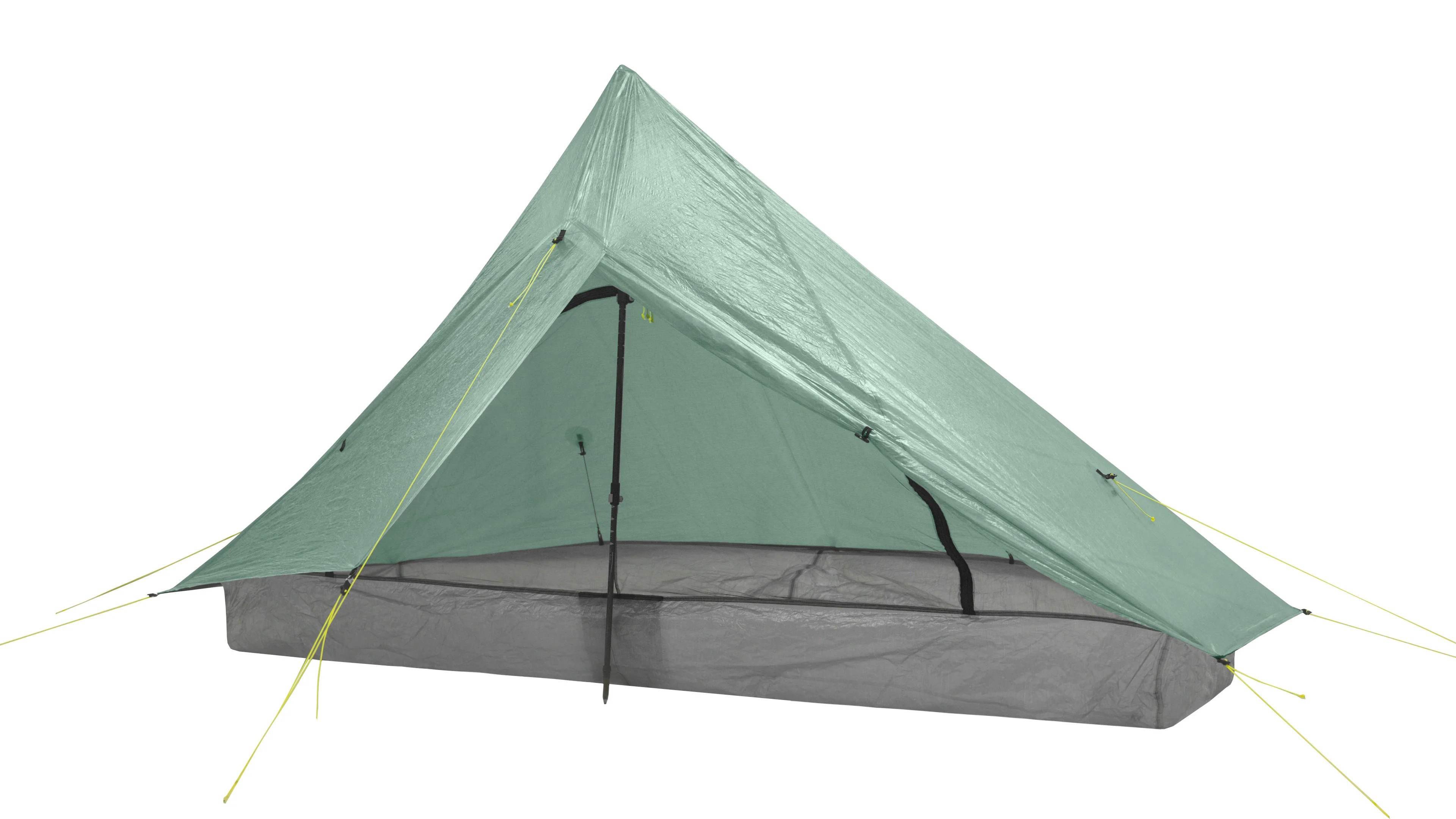The "Classic" version of the Plex Solo is made with thicker Dyneema Composite Fabric for both the canopy and the floor, giving you a bit more durability and opacity. They guy-lines are our original 2 mm bright yellow Z-line. If you'd like an even lighter option, check out our boundary-pushing Plex Solo Lite.